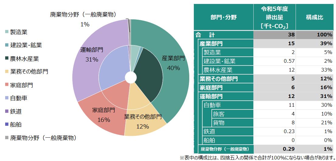 自治体排出量カルテは、環境省が脱炭素地域づくり支援サイトで公表するCO2排出量の推計データです。数値は「標準的手法等に基づく推計結果」です。