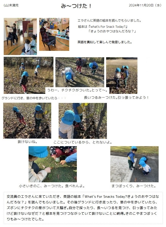 裏山を利用した”アスレチック”や”あたご山への散策活動”を通して