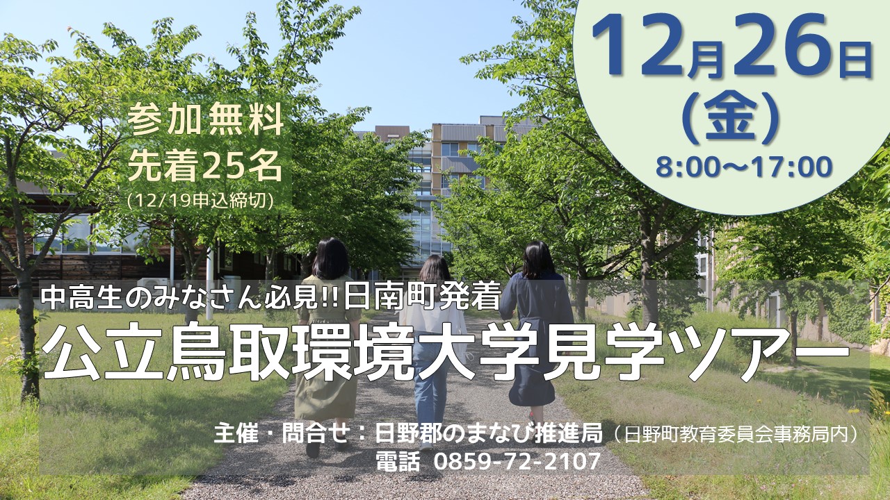 【12月26日開催】日南町発着の公立鳥取環境大学見学ツアー